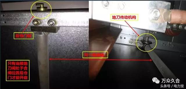 只有當(dāng)接地開關(guān)處于關(guān)閉狀態(tài)時,開關(guān)柜的下門或電纜室的后密封板才能打開,只有當(dāng)電纜室的后密封板關(guān)閉時,接地開關(guān)才能打開。