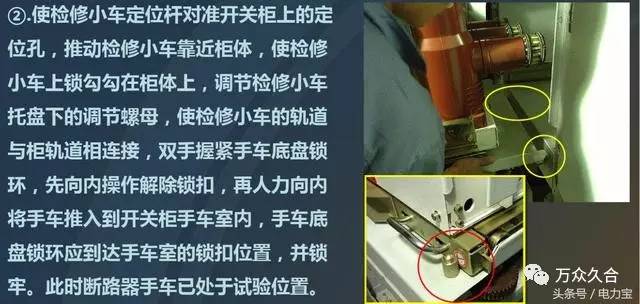 2、將斷路器從檢修車推到開關(guān)柜手車室內(nèi)操作