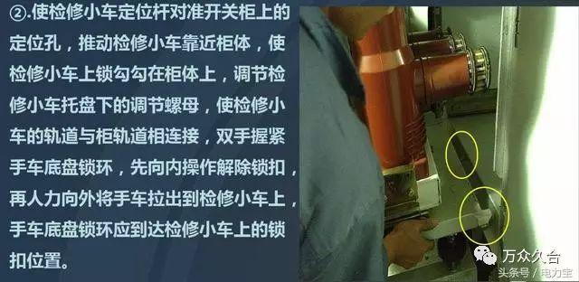 2、將斷路器從檢修車推到開關柜手車室內(nèi)操作