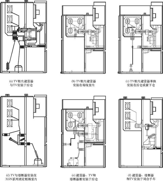 3.對(duì)于連接方式3,將避雷器從原隔間中取出,將避雷器移至手車中,并重新安裝到熔斷器和避雷器手車中,堵住原母線隔間的壁孔,添加手車的下觸頭盒安裝板、觸頭盒擋板和閥門機(jī)構(gòu),將電視機(jī)安裝在后隔間中,并通過導(dǎo)線連接到下觸頭。該方案可以在原有的手推車上實(shí)施,也可以考慮新的手推車。