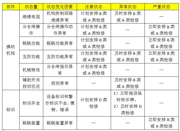 進(jìn)行狀態(tài)維修的設(shè)備的大修周期可以根據(jù)設(shè)備的狀態(tài)進(jìn)行適當(dāng)調(diào)整。原則上,設(shè)備每6年處于正常狀態(tài)尤為重要。符合《配電網(wǎng)設(shè)備狀態(tài)檢修規(guī)程》(Q/GDW 642011)第4.4.1條延長試驗(yàn)時(shí)間條件的設(shè)備,可延遲一個(gè)粘度進(jìn)行檢修。注意設(shè)備大修的情況,應(yīng)根據(jù)基準(zhǔn)周期提前安排維修。